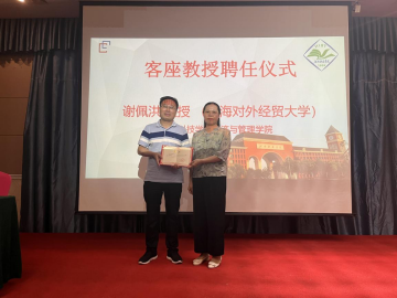 为进一步促进学术交流与合作,提升学院的教学与研究水平,6月21日下午,经济与管理学院聘请知名校友、上海对外经贸大学谢佩洪教授担任客座教授,聘任仪式在五号专家公寓报告厅举行。学院副院长崔鸽主持仪式,并为谢佩洪教授颁发了客座教授聘书。