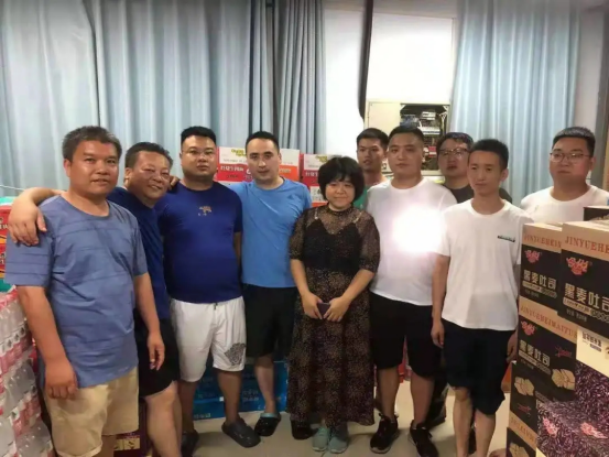 7月25日凌晨2点左右,经管国贸14级高旭校友及所在企业洛阳马到人力公司一行九人连夜从洛阳驱车五个小时送来三车防汛抗灾急需食品物资(纯净水、方便面、火腿)。