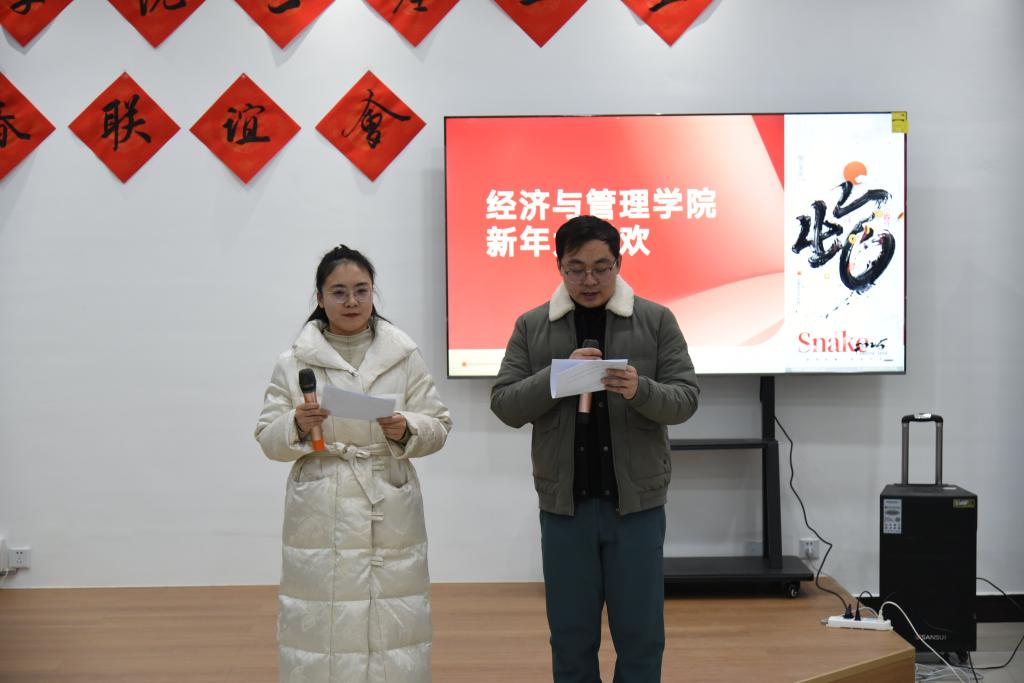 1月10日下午,经济与管理学院在10号楼206室成功举办了一场热闹非凡的新春联谊会,全院教职工齐聚一堂,共庆新春佳节。