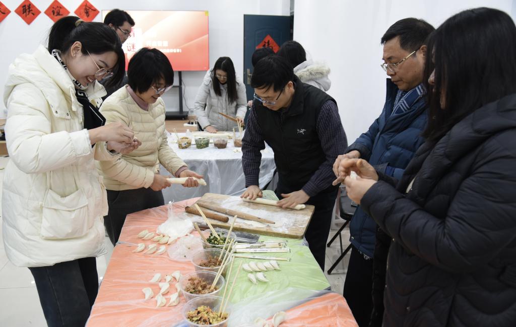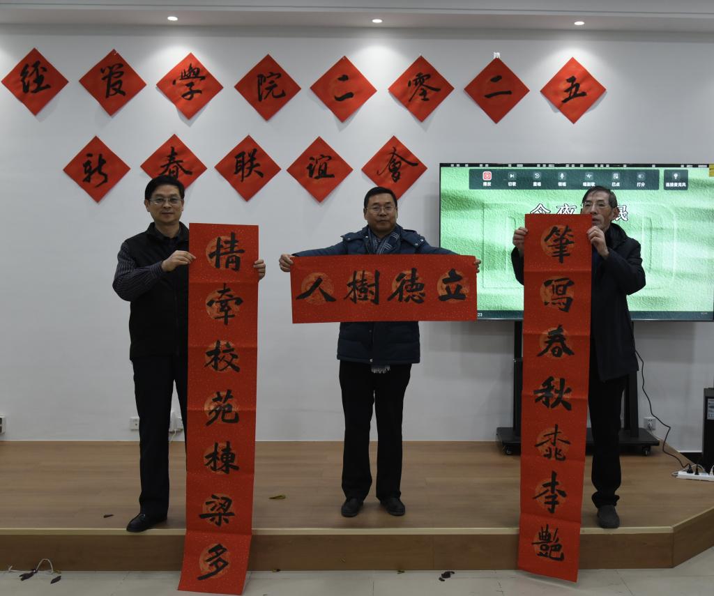 会上,学院党委书记何二毛、执行院长崔鸽代表学院回顾了2024年度取得的成绩,向全体教职工致以美好的新年祝愿。尤太生、郎群秀等多位老师现场挥毫泼墨,书写赠送饱含祝福的春联,墨香四溢,情谊满满。学院分会贴心准备了饺子馅儿、面团等食材,老师们围坐在一起,一边包饺子,一边畅所欲言,在欢声笑语中感受浓浓的年味。