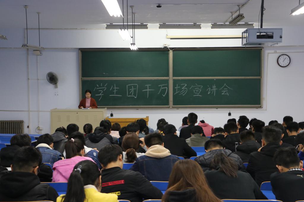 为进一步加强共青团建设,增加团干对团史团务的了解、提高团干的思想政治觉悟、保持其工作热情、更好地发挥团干的模范带头作用。11月7日,机电学院团委在4合2教室发起了“学生团干万场宣讲会”活动。我院学生会主席团成员及各班团干代表参与了会议。会议由团委副书记念梦圆同学主持。