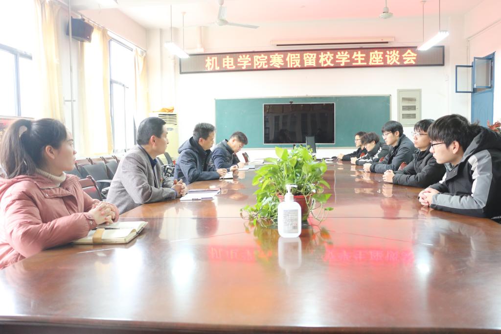 1月14日上午,机电学院在4号楼304会议室召开寒假留校学生座谈会。院党委书记樊跃峰、党委副书记李印、辅导员张怀彬、胡腾允和留校学生参加座谈会。会议由院团委书记何涛主持。