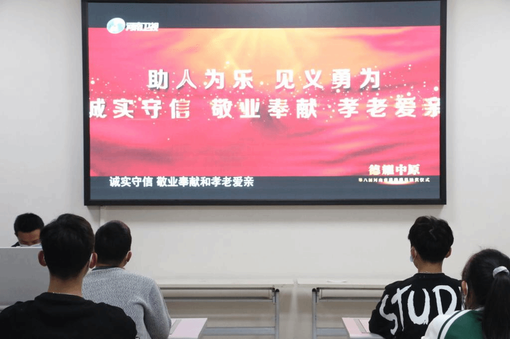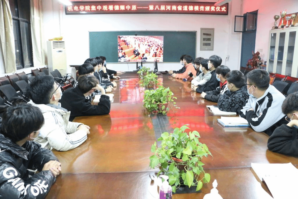2月28日晚,河南卫视准时播出《德耀中原——第八届河南省道德模范颁奖仪式》。为了向同学们传递崇德向善、见贤思齐的鲜明价值追求,机电学院积极组织同学们在4301、4304观看《德耀中原》节目。
