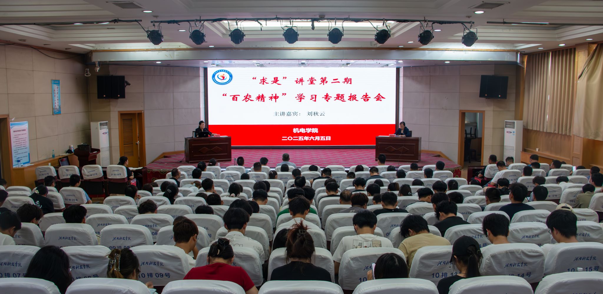 为进一步弘扬和传承“百农精神”,凝聚广大师生的爱校荣校兴校之情,6月5日,机电学院在图教201举行“求是”讲堂第二期暨“百农精神”学习专题报告会。机电学院全体教师、学生党员和各年级学生干部共230余人参加。报告会由学院党委书记张雅凌主持。