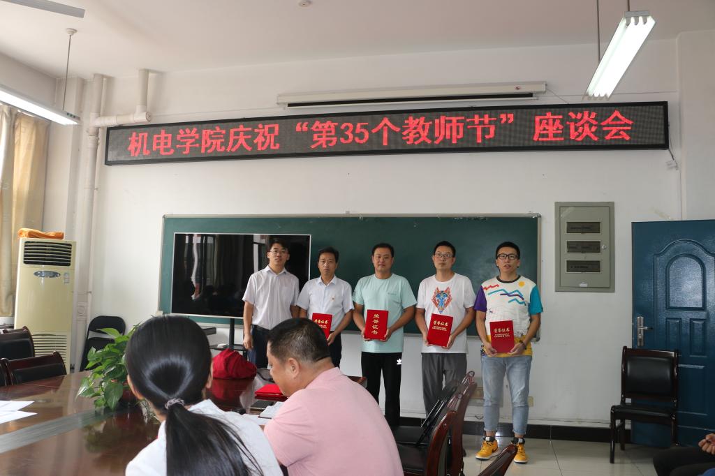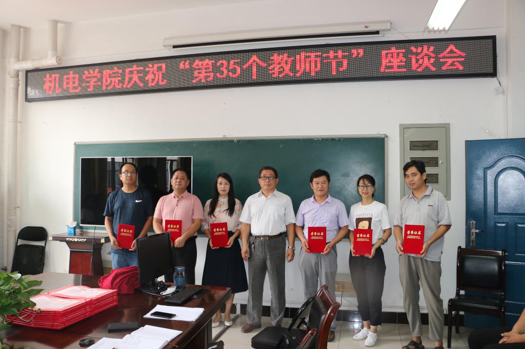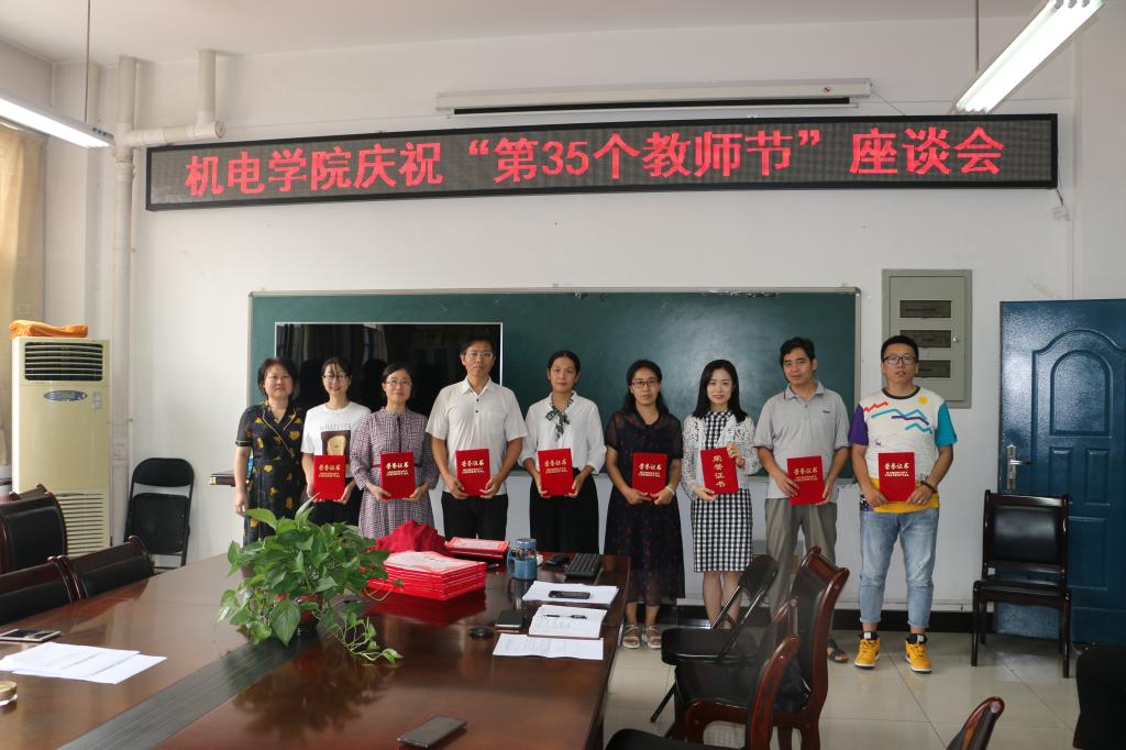 首先,全体教师共同学习了校党委、行政的《致全校教师的慰问信》。学院对2018-2019学年校优秀教师、优秀教育工作者、师德先进个人以及机电学院第八届最美教师、第三届优秀班主任进行了表彰。