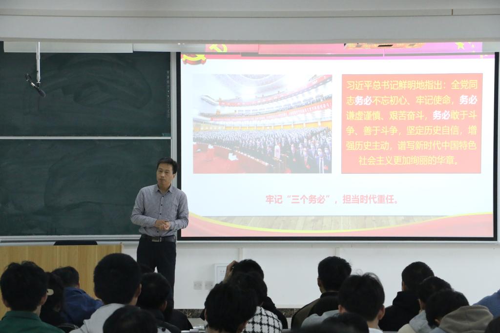 樊跃峰围绕“以赤诚之心奋进新征程”“以科学之态对应新常态”“以奋斗之姿实现新梦想”三个方面,紧密结合“党的二十大精神、后疫情时代、合理规划大学生活”进行讲解,授课过程中,既引经据典,又结合学生实际,鼓励同学们勇担时代使命,培育责任担当,发扬斗争精神,把实现个人价值同党和国家的前途命运紧紧联系起来,引导学生们树立文化自信、锤炼拼搏精神、感悟成长力量。