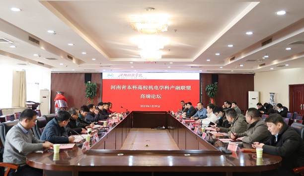 1月26日上午,我校承办的首届河南省本科院校机电学科产融联盟高端论坛在办公楼206会议室成功举行。郑州大学机电学院执行院长高建设、河南师范大学材料学院院长高书燕、河南科技大学机电学院院长谷瑞杰、华北水利水电大学机电学院院长王丽君、河南工业大学机电学院副院长郭永刚、郑州轻工业大学机电学院院长李浩、河南工学院科研处处长侯锁军、洛阳理工学院机电学院院长李彬、河南财政金融学院对外合作处处长葛元涛、新乡学院机电学院副院长连黎明、郑州煤矿机械集团有限公司研究院院长张定堂立讯精密工业股份有限公司总监赵万纪、中信重工股份有限公司研究院院长杜波、中铁装备股份有限公司研究院院长宋丹、河南科特尔机械制造有限公司董事长梁道蓬、国机工业互联网研究院(河南)有限公司部长苗发祥、河南博源新材料有限公司总经理牛爱莲等特邀嘉宾参加了本次论坛。论坛由我校机电学院院长聂福全教授主持。