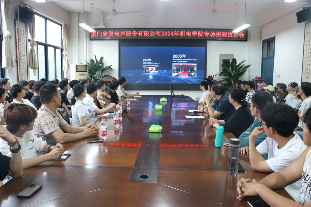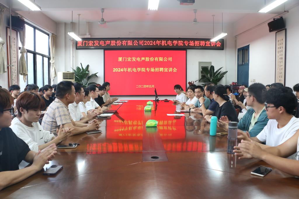 为进一步拓宽毕业生就业渠道,精准推荐就业岗位。5月28日,机电学院邀请厦门宏发电声股份有限公司在4号楼304会议室举办专场招聘宣讲会。厦门宏发电声股份有限公司人力行政总监连鸿、技术总监代文广,校招负责人卢艺郎,机电学院党委书记张雅凌、院长聂福全、党委副书记何涛、团委书记刘颖和毕业生代表参加了宣讲会。