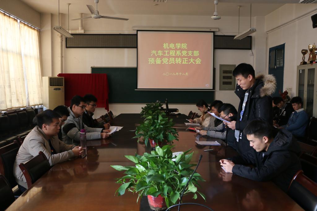 12月13日,机电学院汽车工程系学生党支部、电气工程系学生党支部、机械工程系学生党支部分别在4304会议室和3206教室召开了预备党员转正大会,全体学生正式学生党员和预备学生党员参加了会议,会议分别讨论决议了汽车工程系6名预备党员、电气工程系8名预备党员、机械工程系7名预备党员,共计21名同志的转正问题。