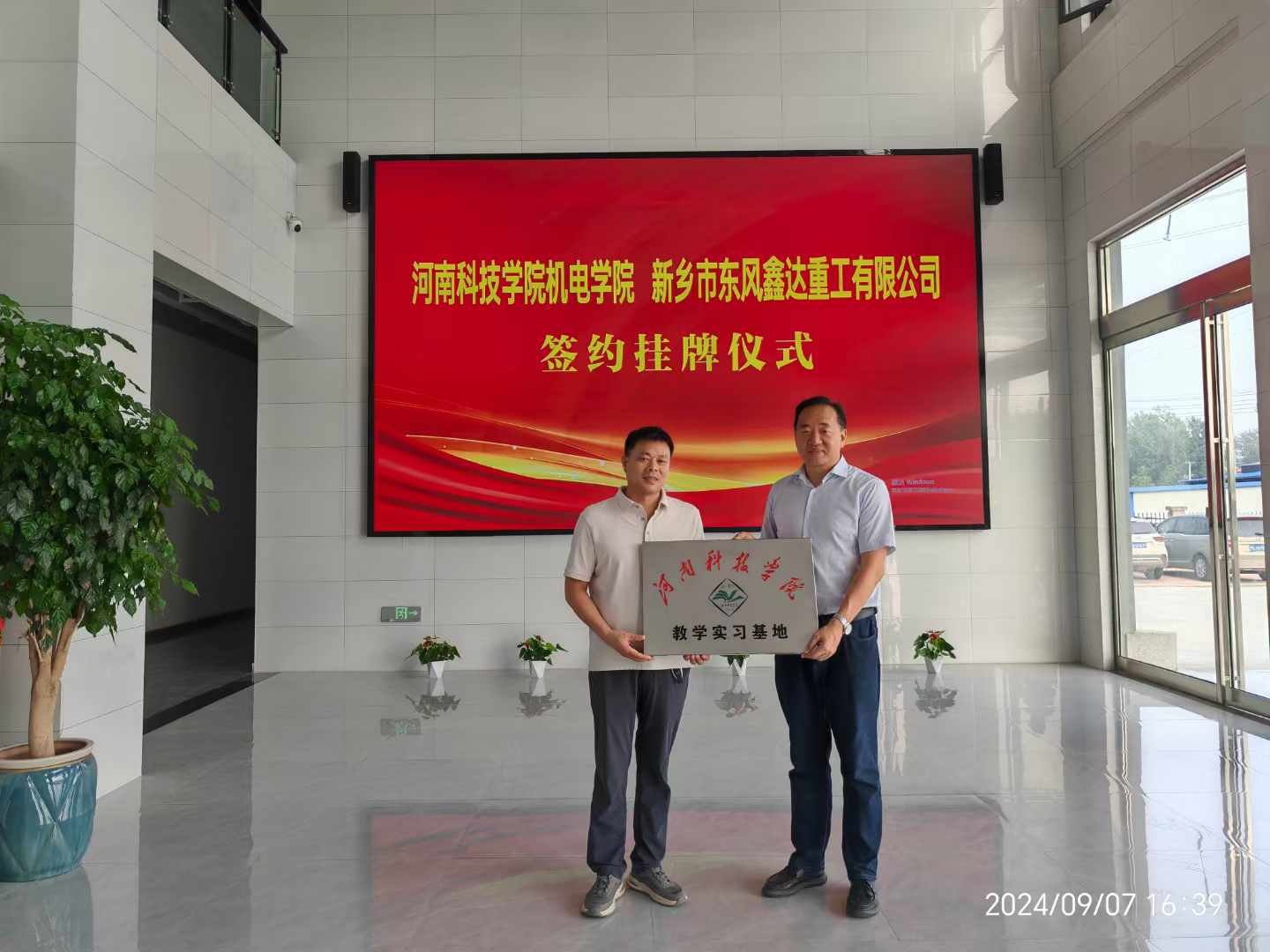 为持续拓宽学生实习实践渠道,深化校企产学研合作与校地融合,不断提升就业服务水平,为毕业生挖掘更多岗位资源,促进毕业生高质量充分就业。9月7日,机电学院院长聂福全一行四人,实地考察走访了新乡市东风鑫达重工有限公司,与企业负责人就推进产学研合作进行座谈交流并进行了大学生实习基地签约授牌仪式,新乡市东风鑫达重工有限公司董事长王守忠,副总经理黄长周参加了座谈。