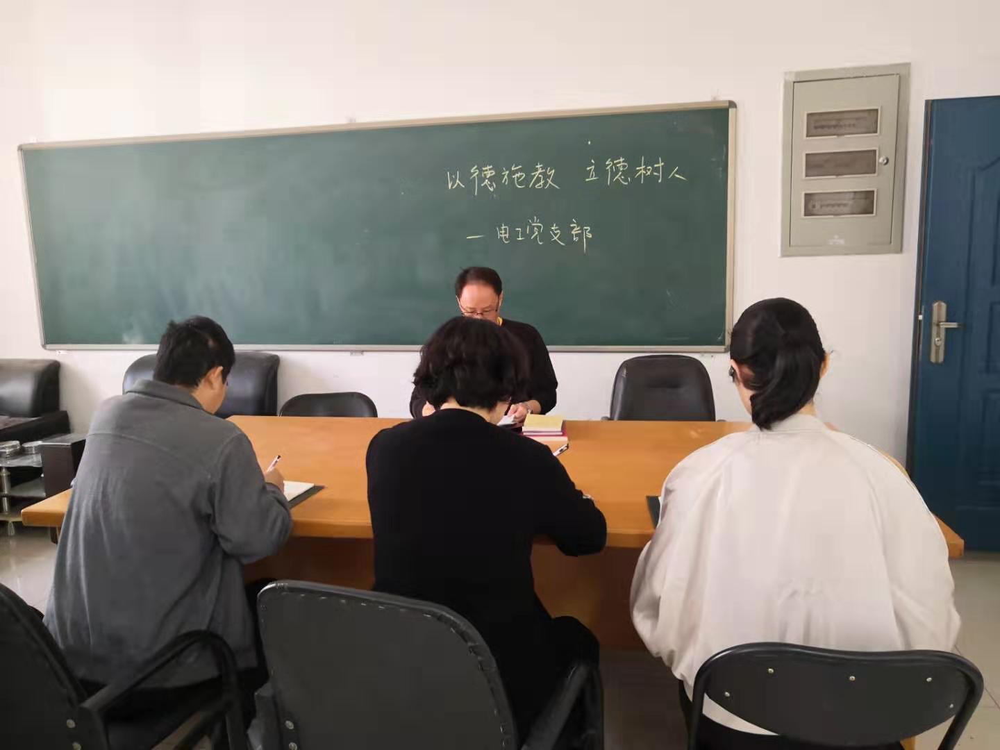10月1日-20日,机电学院党委所属7个教师党支部也分别依托“三会一课”,主要围绕“课程思政”“全员育人”“师德培养”等开展了“立德树人”讨论。