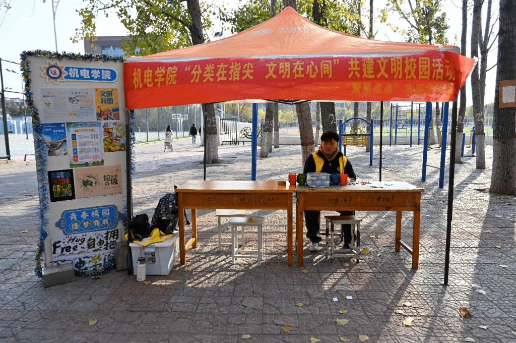 为全面扎实推进学校垃圾分类宣传,筑牢学生垃圾分类的环保理念,12月12日,机电学院“繁星点点”志愿服务团在西校区第三学生餐厅对面开展“分类在指尖,文明在心间”共建文明校园活动。
