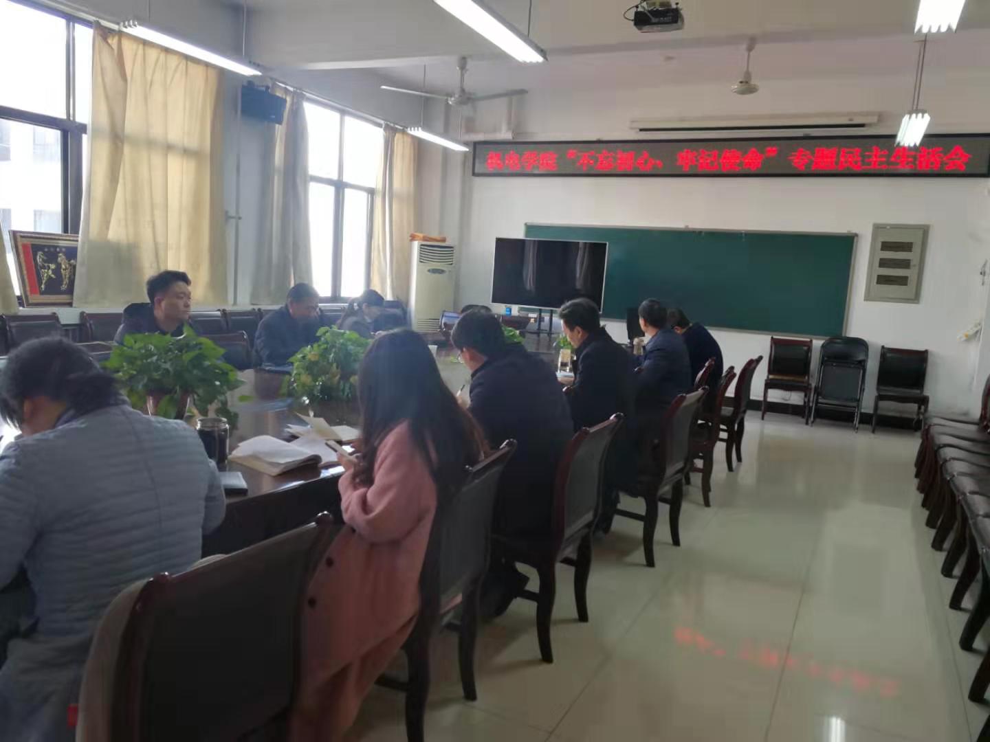 12月10日上午机电学院领导班子在4304会议室召开“不忘初心、牢记使命”专题民主生活会。校主题教育第二指导组组长于祯,校党校办公室主任叶晖、党办信息科科长宗辉到会指导,学院领导班子成员参加会议。会议由院党委书记樊跃峰主持。