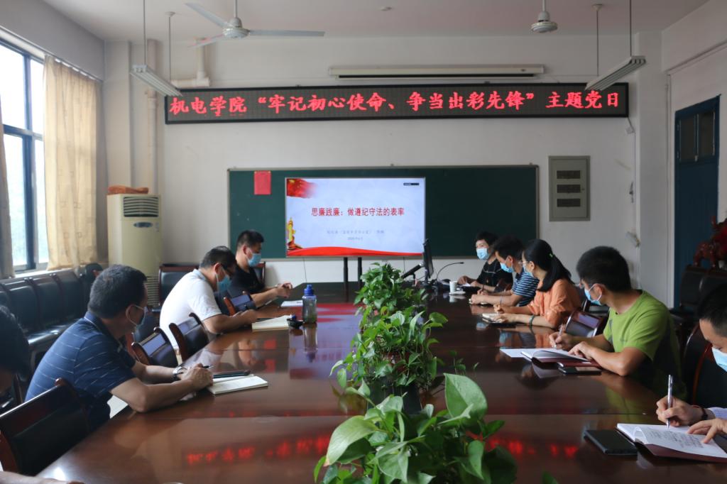 6月28日下午,机电学院党委通过线上和线下相结合的方式召开“牢记初心使命、争当出彩先锋”主题党日活动。会议由机电学院党委书记樊跃峰主持。机电学院全体教工党员参加了会议。