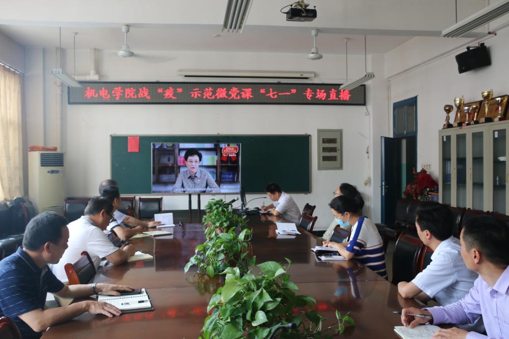 7月1日上午,机电学院党委组织没有监考任务的党员教工集中观看高校党组织直播,随后各党支部组织未参加观看直播的教工党员和学生党员观看了回放。