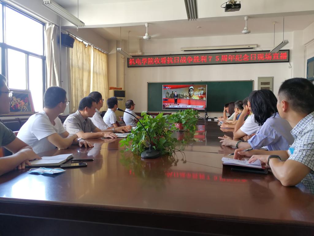 9月3日,是中国人民抗日战争暨世界反法西斯战争胜利75周年纪念日。习近平等党和国家领导人将同首都各界代表一起,在中国人民抗日战争纪念馆向抗战烈士敬献花篮。上午9时,机电学院院组织学院师生收看现场直播。