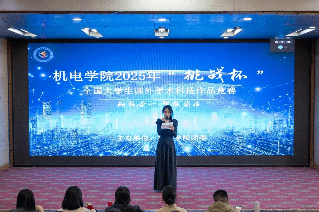为进一步引导青年学生培养科学精神和科学态度,掌握科学知识与方法,全面提升科技创新能力。3月20日下午,机电学院在图教201举办了”挑战杯“大学生课外学术科技作品竞赛院赛。校团委副书记马婧丽及美术与设计学院团委副书记苏梦瑶出席并担任评委,学院全体辅导员和学生代表300余人参加。
