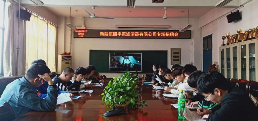 10月22日下午,机电学院邀请新航集团平原滤清器有限公司在4304会议室召开专场招聘会。我院2017级部分同学参加会议。