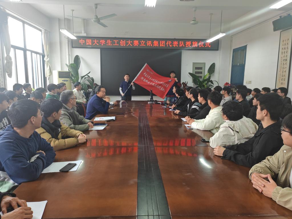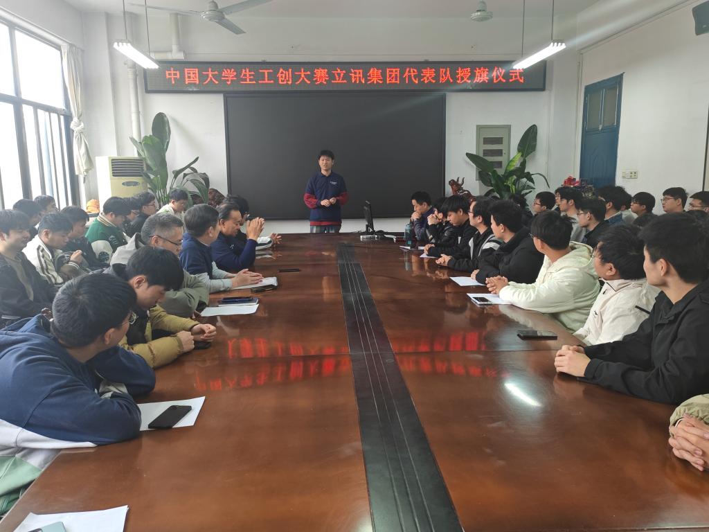 赵万纪为中国大学生工创大赛立讯集团代表队授旗。