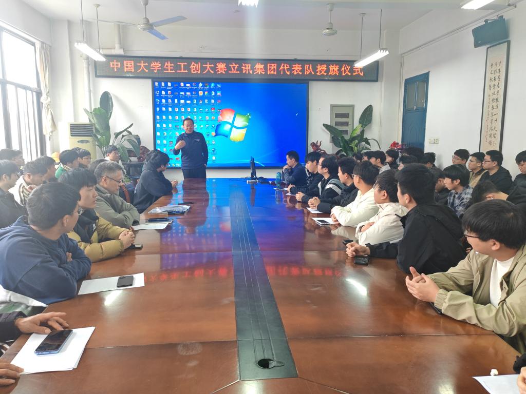 3月14日上午,机电学院在4304会议室举行中国大学生工创大赛立讯集团代表队授旗仪式。立讯精密专案部总监赵万纪,院长聂福全,院党委副书记何涛,副院长杨文强,部分学生代表参加授旗仪式。授旗仪式由杨文强主持。