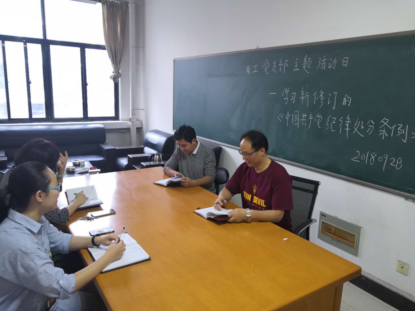 9月29日-30日,机电学院各党支部分别开展主题党日活动,庆祝新中国成立69周年。