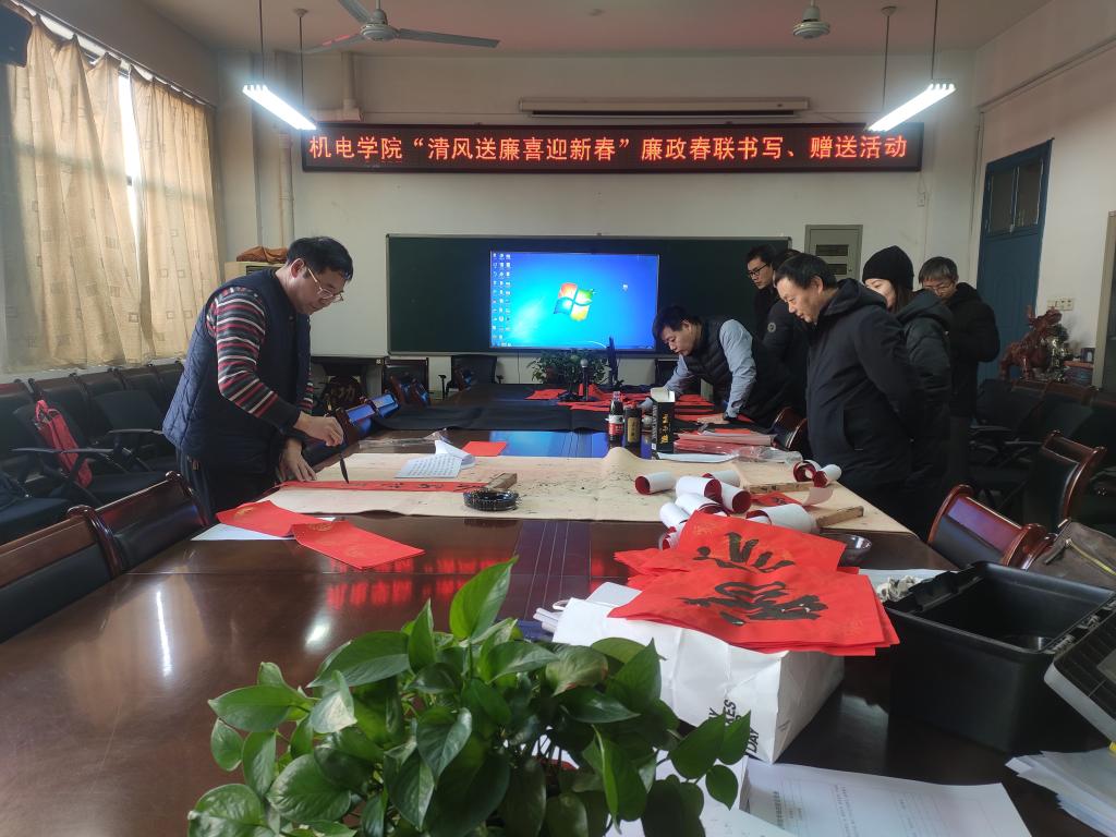 此次机电学院开展“清风送廉、喜迎新春”廉政春联书写赠送活动,以春联为载体,将廉洁文化元素融入春联之中,通过书法爱好者们的手,传递廉洁奉公的理念和勤俭节约的风气,提醒广大党员增强春节期间的廉洁自律意识,营造了“进门先学廉、过节不忘廉、干部都守廉”的良好氛围。