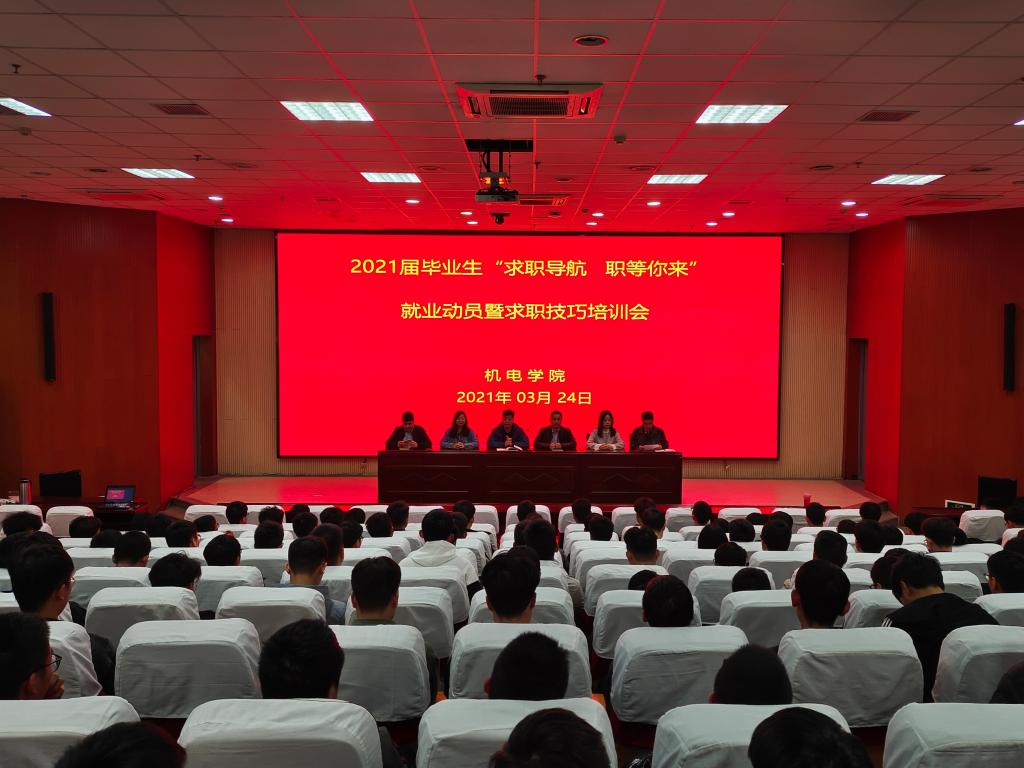 为深入贯彻落实党中央、国务院和省委省政府关于做好高校毕业生就业工作的要求,机电学院于3月24日在图书馆一楼报告厅召开了2021届毕业生“求职导航 职等你来”就业动员暨求职技巧培训会。机电学院党委副书记李印,人工智能学院团委书记郭小月,机电学院全体辅导员参加会议。