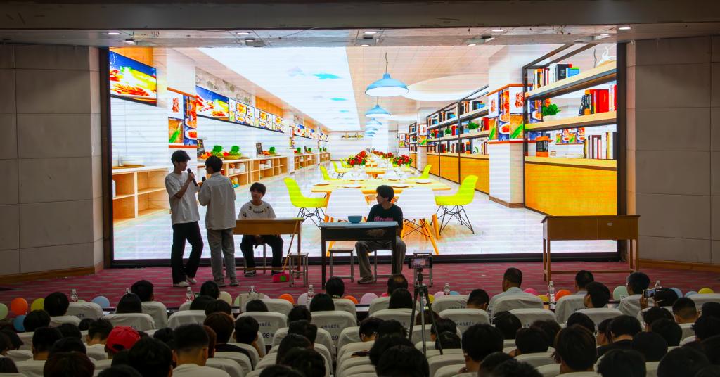 晚会在摇摇杯乐队的激情演奏中拉开序幕。小品《毕业计划》生动展现了毕业生们对未来的规划与憧憬,幽默又温馨的情节引发了观众的共鸣,笑声与掌声回荡在会场。紧接着,四个位女生带来K - pop 舞蹈《What is Love》,舞者台上她们活力四射,以整齐划一的舞步和充满感染力的表演,让现场观众沉浸其中,尽享青春的魅力与活力。歌曲《迷宫》婉转悠扬,每一个音符都仿佛在诉说着校园时光里的喜怒哀乐,让现场观众沉浸在校园回忆中。相声《学哑语》幽默风趣,机电学院啦啦队带来的舞蹈《一千零一夜》动感十足,为晚会增添了不少活力。钢琴独奏《Avid》展现了高超的艺术水准,歌曲《变废为宝》传递出积极向上的正能量。《舞蹈串烧》环节,多种舞蹈风格精彩呈现,让观众们领略到不同舞蹈的魅力。歌曲《剩下的盛夏》表达了对盛夏的回忆和感慨。教师合唱的《祝你一路顺风》表达了对毕业生的美好祝愿。最后,晚会在院长聂福全深情演唱的《恋曲1990》中圆满落幕,全体演职人员合影留念,记录下这温馨而又难忘的时刻。