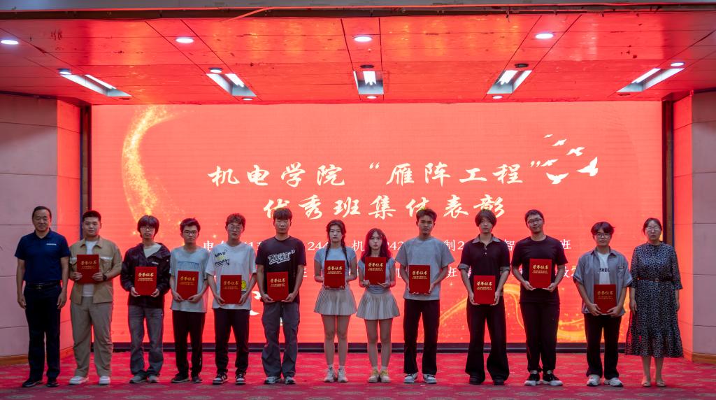 仲夏蝉鸣,骊歌轻扬。6月4日,机电学院在图教201举行欢送2025届毕业生晚会暨“雁阵先锋”表彰大会。学院党政领导班子成员,全体辅导员和学生代表300余人参加。