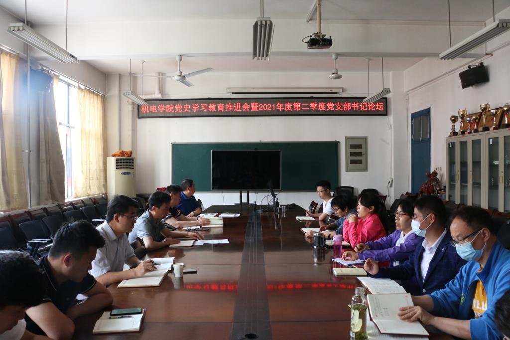 5月19日上午,机电学院在4304会议室召开党史学习教育推进会暨2021年度第二季度党支部书记论坛,机电学院党政领导班子、党建组织员、各党支部书记参加了会议,会议由院党委书记樊跃峰主持。