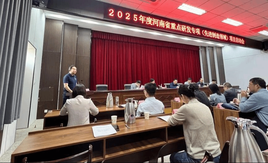 4月17日,2025年度河南省重点研发专项(先进制造领域)项目启动会在郑州举行。会议由河南省科学技术厅二级巡视员曹贵金主持。河南省科技厅党组成员、副厅长潘刚,省财政厅科技处李旭处长、省科技厅先进制造处董雅松处长以及来自全省的项目获批单位代表出席会议,我校聂福全教授团队,马利杰教授团队应邀参会,科技处相关人员陪同出席。