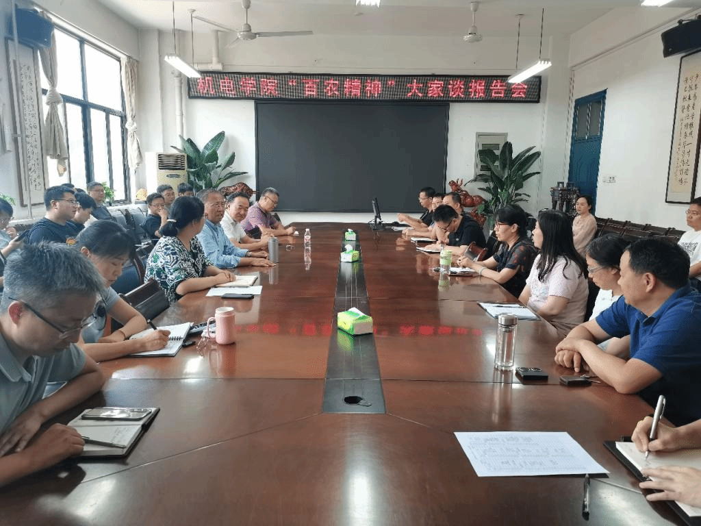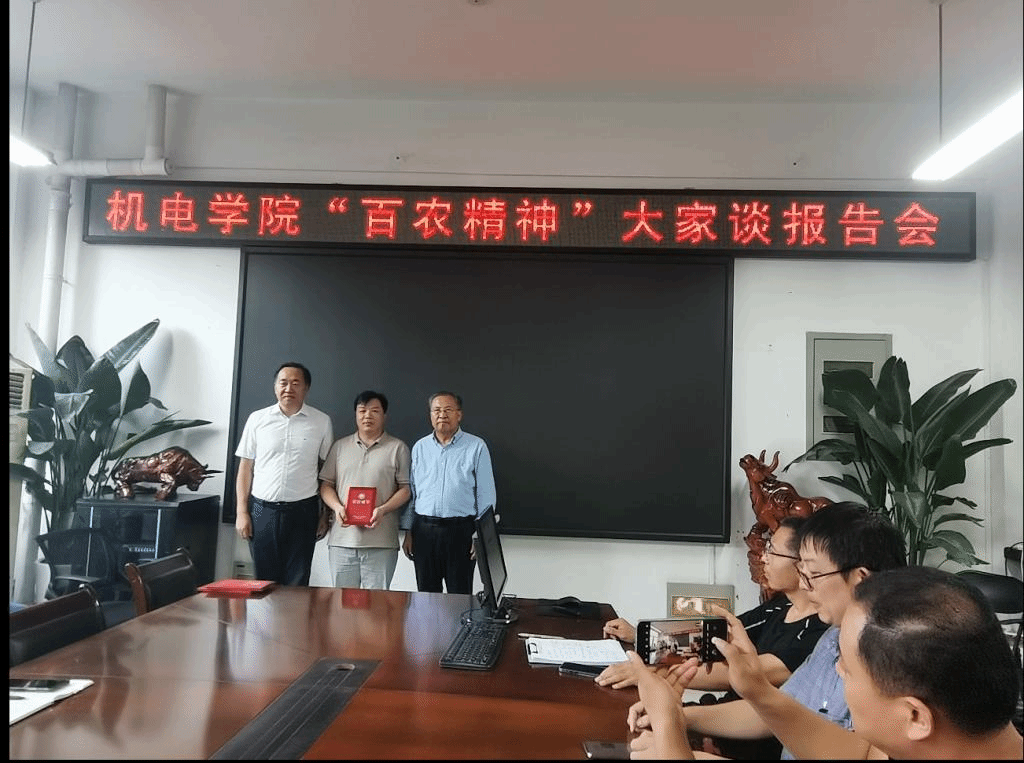 为进一步挖掘、弘扬和传承好“百农精神”,激发新时代机电人奋勇争先、奋进一流的干事创业的精神,6月28日下午,机电学院在学院4304会议室举行“百农精神”大家谈报告会。报告会邀请我校国家科技进步一等奖获得者茹振钢教授主讲。学院全体教职工参加了报告会。