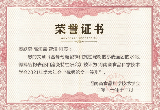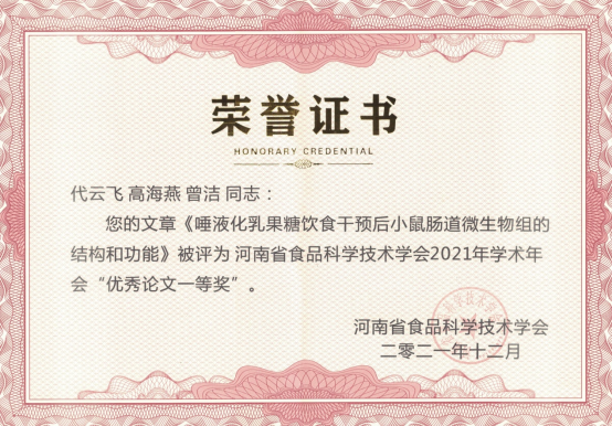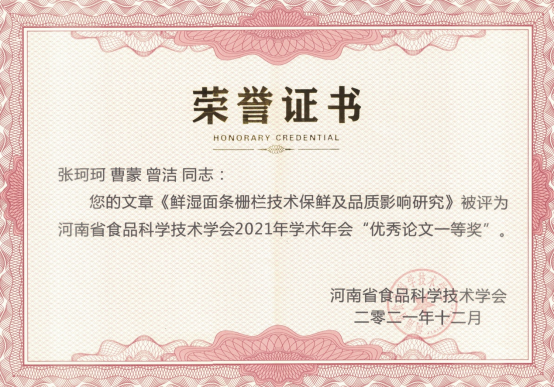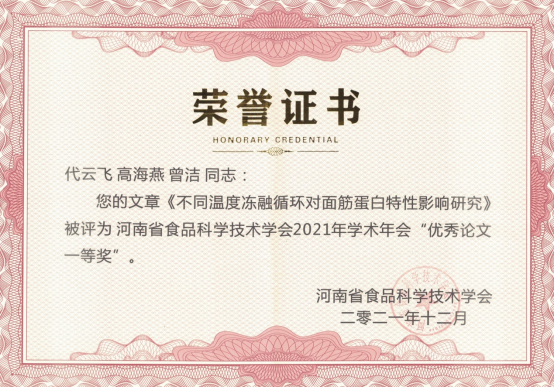 近日,为了推动我省食品行业技术创新,表彰在食品领域所取得的新技术、新成果,为食品科技工作者提供更好的交流平台,河南省食品科学技术学会举办了“黄河流域食品产业融合创新暨河南省食品科学技术学会2021学术年会”征文活动。在此次征文活动中,经专家评审,我院喜获佳绩,共获一等奖4篇,二等奖5篇。