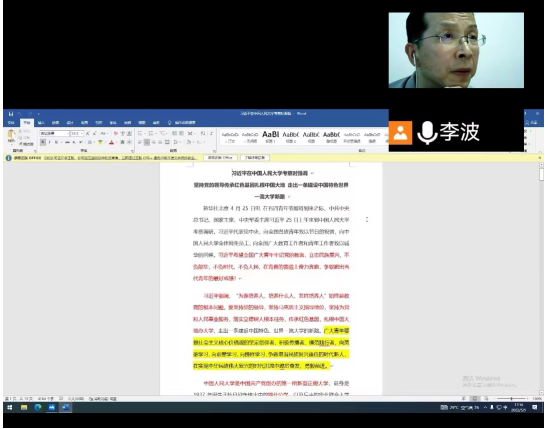 5月5日下午,食品学院通过腾讯会议形式集中学习习近平总书记视察中国人民大学重要讲话精神,学院全体教工参加了会议,会议由学院党委书记李波主持。