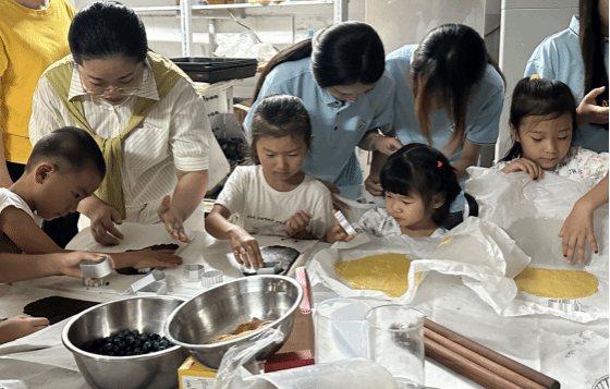 实训活动环节,更是将现场气氛推向高潮。在实践团成员的指导下,小朋友们变身“小小美食家”,积极参与到美味的食品制作中。不一会儿功夫,可爱的小猫、小熊等造型的饼干、美味的蛋挞就制作完成了。在制作过程中,孩子们不仅锻炼了动手能力,还培养了团队协作能力。