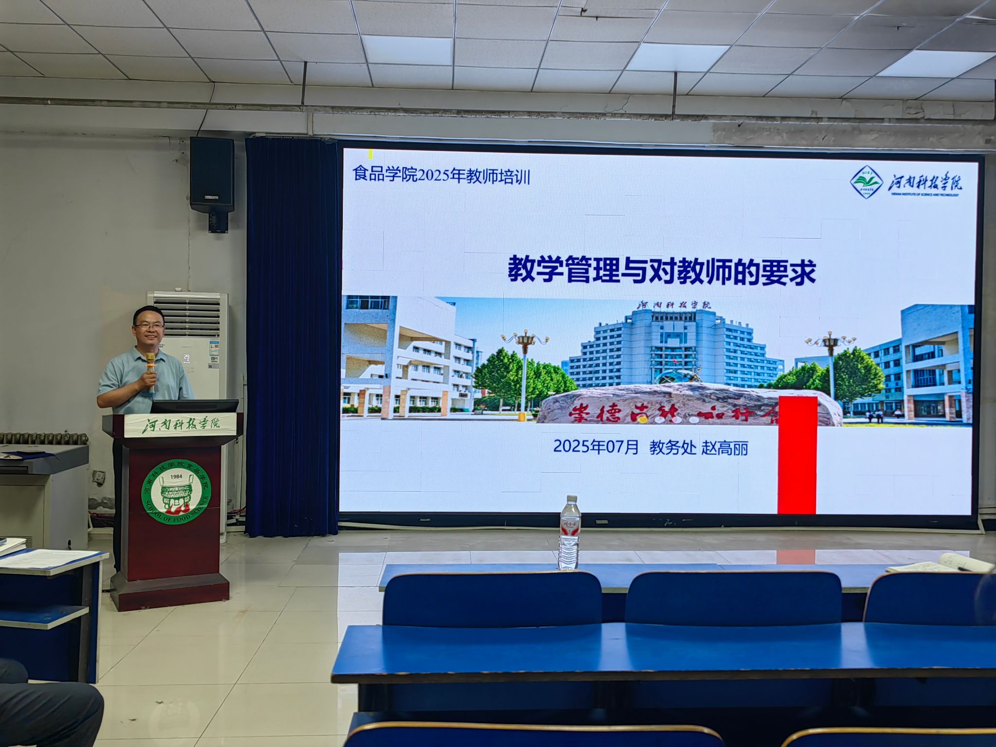 为进一步提升教师队伍的专业素养与教学创新能力,食品学院于7月7日正式启动暑期教师集中培训。本次培训以“教师专业素养与教学创新能力提升”为主题,汇聚了食品学院全体教师及教学管理人员,培训开班仪式在五合一教室举行,教务处副处长赵高丽、苏喜庆,食品学院领导班子成员以及全体教师共同出席,会议由食品学院副院长冉军舰主持。