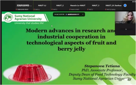 12月16日,由教育部学校规划建设发展中心主办,河南省教育厅、河南师范大学、河南工业大学等共同承办的2022国际产学研用合作会议(河南)在线隆重召开。会议旨在搭建中外高校、科研院所、行业企业合作交流平台,构建高质量合作伙伴关系,促进共赢发展。由食品学院推荐的校特聘教授、乌克兰国家高等教育研究院院士Igor Mazurenko(马祖连科)教授,新加坡南洋理工大学终身副教授YongguiGao博士,乌克兰苏梅国立农业大学食品技术学院副院长Tetiana Stepanova副教授分别应邀出席了“生物与医药”和“食品科学与工程”合作会,并作主题报告。