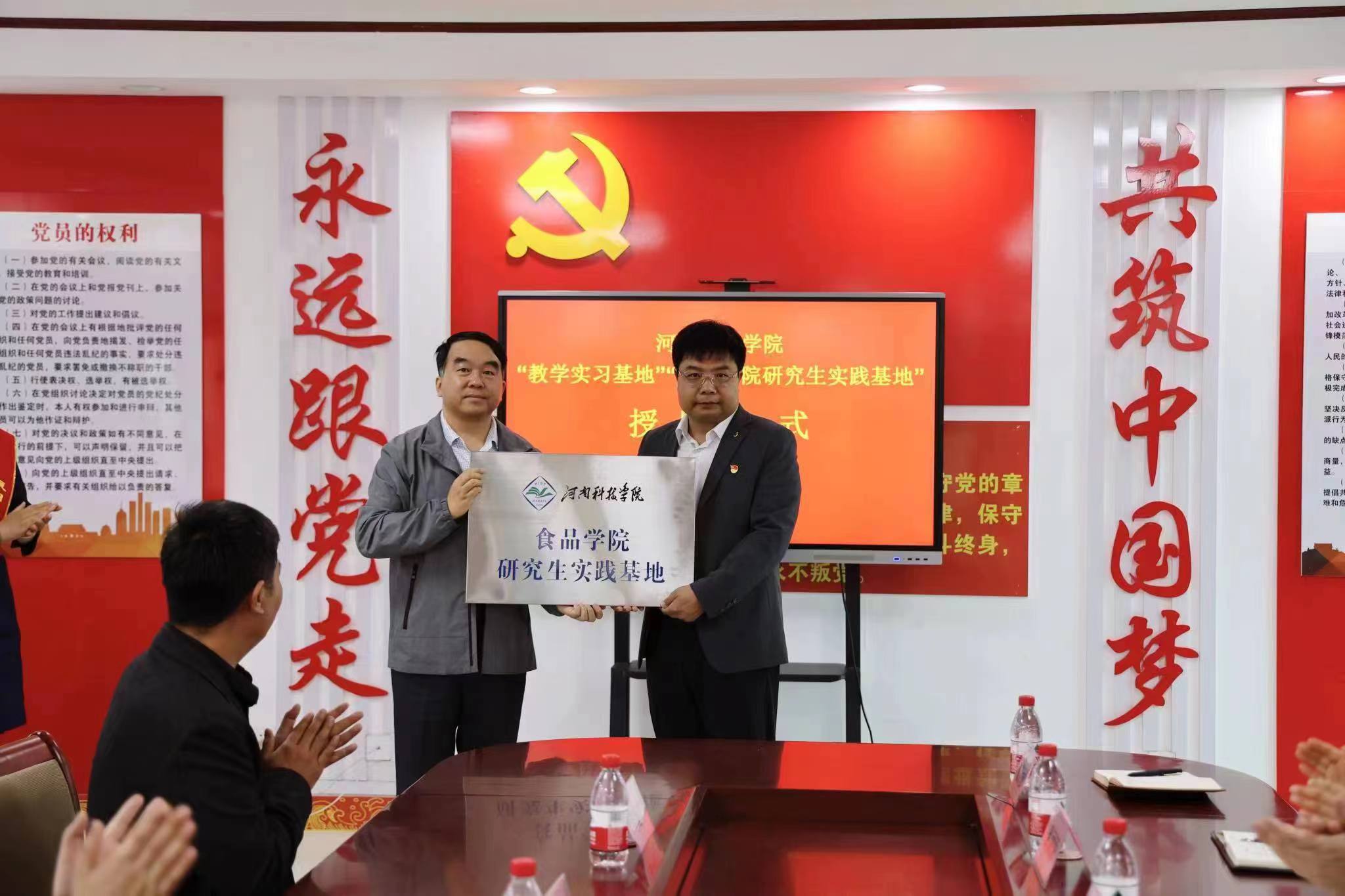 李光磊介绍了学院发展建设和实习基地建设情况,并授予原阳县职教中心“河南科技学院教学实训基地”和“河南科技学院食品学院研究生实践基地”牌。此次授牌,标志着双方的合作踏上了新征程。河南科技学院将依托智力资源和人才优势,为原阳培养更多的能工巧匠乃至大国工匠,推动原阳县预制菜产业创新驱动发展。