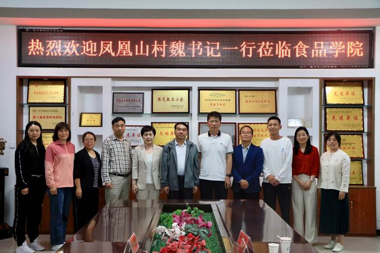 会上,李光磊对魏会军一行的莅临交流表示热烈欢迎,介绍了食品学院的专业组成和发展特色。魏会军介绍了凤凰古村目前的发展概况,村里的特色产业和优势旅游资源。吴彦华就特色农产品深加工、农文旅融合发展等方面提出合作意愿,希望学院教师能实地考察,为凤凰山村乡村振兴工作提供技术、人才等方面支持。