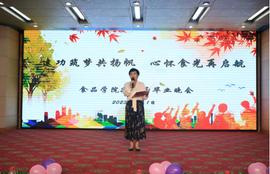 6月1日晚,食品学院2023届毕业生晚会在图教201会议室隆重举行。学院党委书记陈腾,副书记郭延成,副院长张令文以及师生代表300余人参加了此次晚会。晚会以“建功筑梦共扬帆 心怀食光再启航”为主题,由“忆昔篇·筑梦校园”“感恩篇·师生情谊”和“启航篇·绽放青春”三个篇章组成。