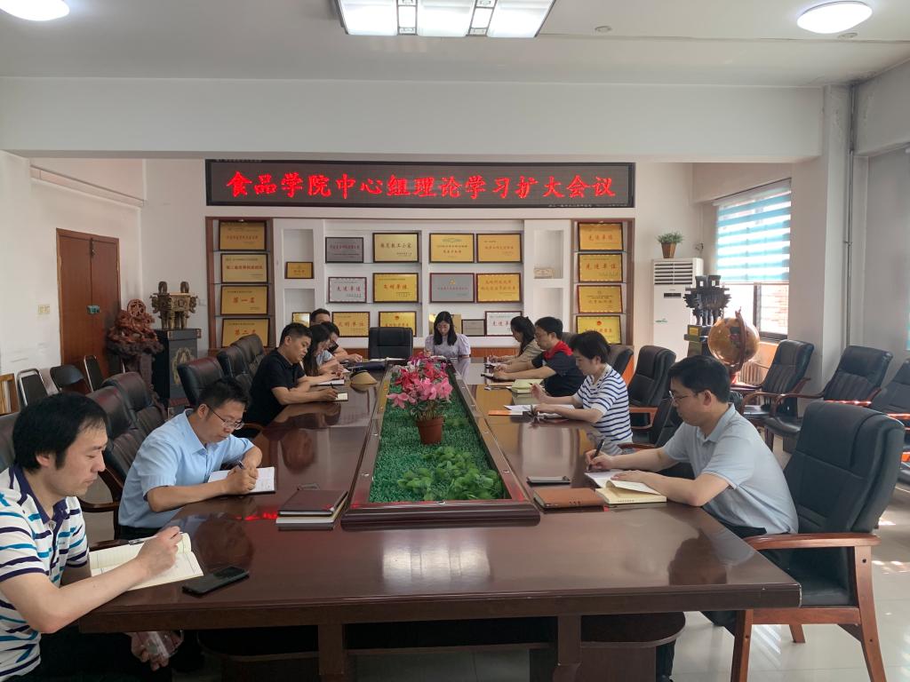 6月15日上午,食品学院在304会议室召开党委理论学习中心组(扩大)学习会。全体班子成员、支部书记参加,会议由院党委书记陈腾主持。