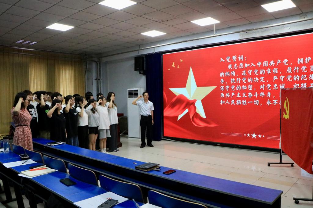 大会在庄严的《国际歌》中拉开帷幕。郭延成带领全体党员面对鲜红的党旗,高举右手,重温入党誓词,并为28期预备党员佩戴徽章。宣誓声铿锵有力,充分体现了全体党员坚定不移听党话跟党走的决心。