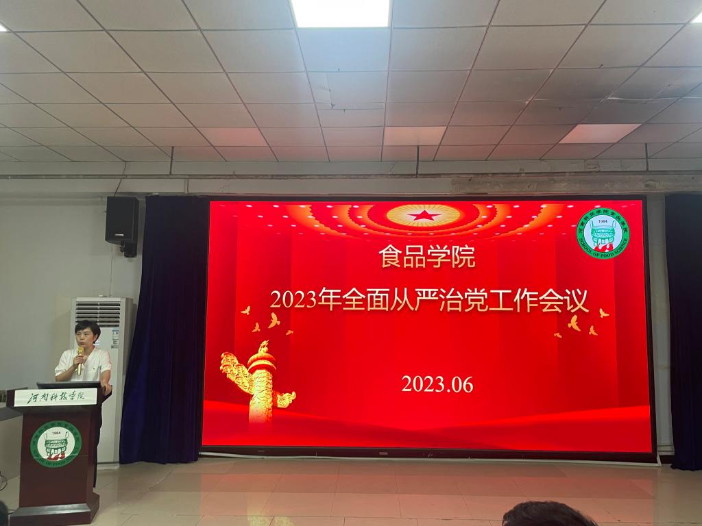 6月30日上午,食品学院在五合一召开学院2023年度全面从严治党工作会议,学院党政领导班子成员和全体教职工参加了会议。会议由学院党委书记陈腾主持。
