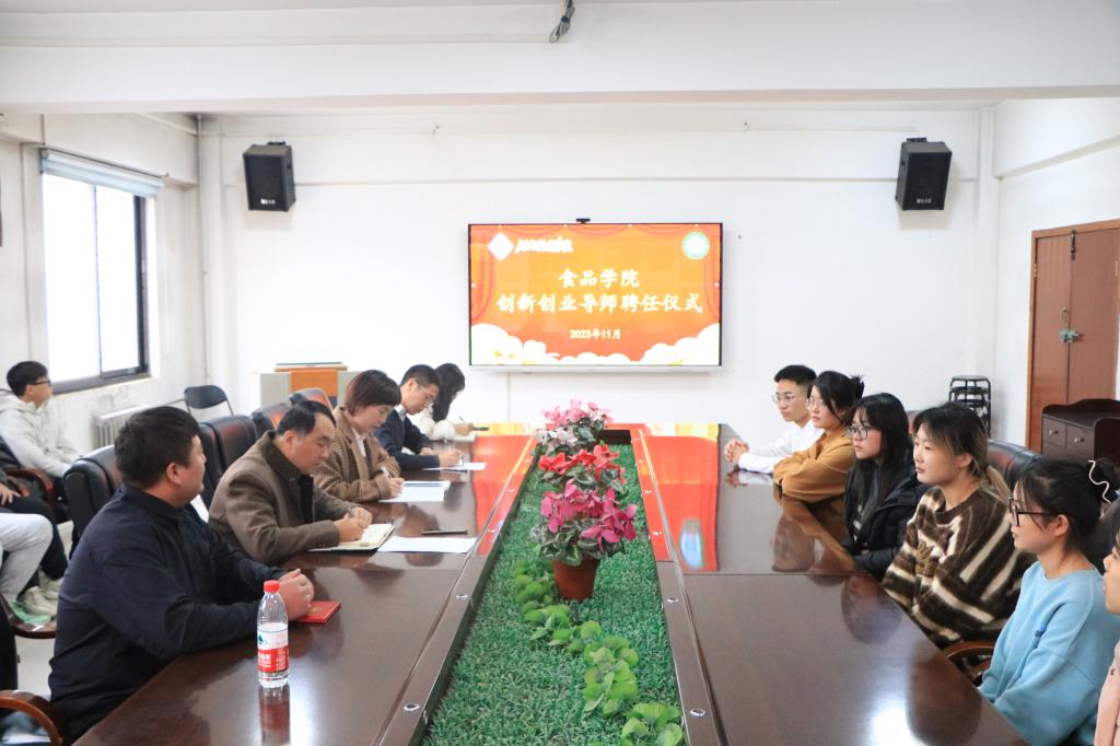 为进一步推进创新型人才培养,提升学生的就业创业能力,11月15日下午,食品学院在院办公楼304会议室举办创新创业导师聘任仪式。食品学院党委书记陈腾,院长李光磊,副书记郭延成,团委副书记郭婧媛,食创空间负责人陈慧祥及学生代表参加了此次仪式。仪式由郭延成主持。