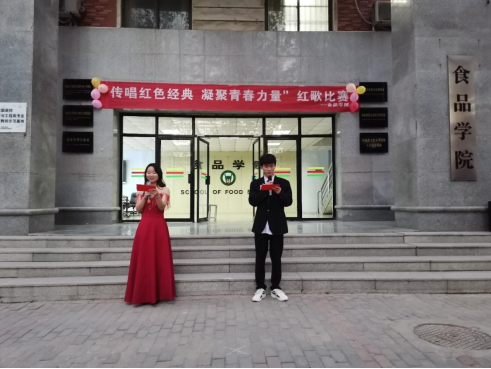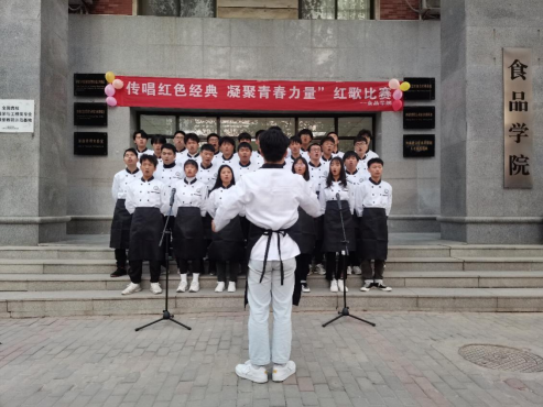 每个班级分别合唱了校歌《托起明天的太阳》,并自选一首红色歌曲。各班级表演形式多样、各具匠心,不论是齐唱、轮唱还是诵读形式,处处体现出了同学们的认真准备和精心排练。《歌唱祖国》《我和我的祖国》《没有共产党就没有新中国》《国家》《少年中国说》等经典曲目催人振奋,现场颇具感染力。每个班都唱出了自己的特点和气势,充分展现出了食品学子的精神面貌和爱国情怀。