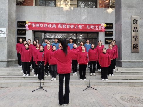 为全面推进五育并举,开展爱国主义、集体主义、校史教育,11月28日下午,食品学院在院办公楼前举办了“传唱红色经典,凝聚青春力量”红歌大赛。学院党委书记李波,副书记刘克平,教师冯甲庆,2021级班主任代表焦凌霞、赵姗姗、肖华、宋静雅,各年级辅导员以及2021级全体学生参加了此次活动。