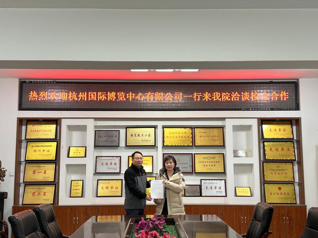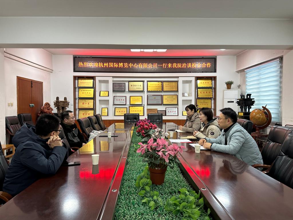 会上,双方又围绕生产实习、就业等方面进行了深入交流。黄健对杭州国际博览中心进行了详细介绍,陈腾围绕学院办学特色、专业设置、人才培养等内容进行了相应介绍。双方一致表示,要依托双方优势资源,继续深化校企合作关系,促进学院人才培养,助推学院毕业生高质量就业。