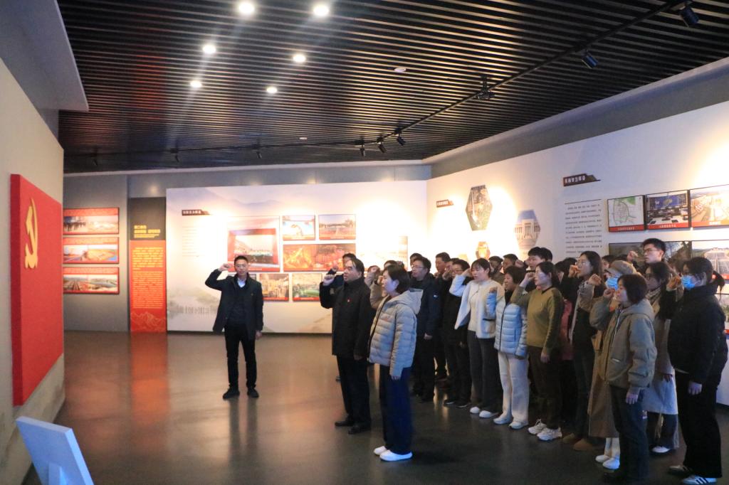 在“辉县人民干得好”展览馆,大家依次参观了序厅、水旱频繁共城大地民生艰、艰苦奋斗辉县山河重安排、不忘初心砥砺奋进铸辉煌四个部分。一件件珍贵文物、一张张历史照片,把大家带回到上世纪六七十年代,以郑永和为代表的共产党人,带领辉县人民战天斗地、治山治水的感人场景。这段波澜壮阔的奋斗历程和辉县精神,已经与巍巍太行融为一体,历久弥新、历久弥坚,感染着在场的每一个人。参观的最后,师生党员面对党旗,庄严地举起右手,铿锵的入党誓词,响彻展厅。