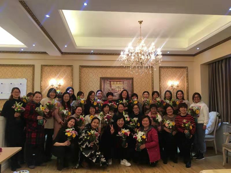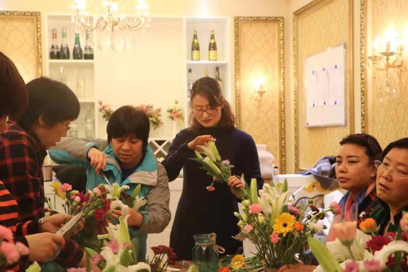 活动中,邀请的资深花艺师采用新鲜花材为到场教师讲解了插花的种类和插花的原则。插花中要注意色彩、主次、质感、平衡以及花的护理。讲解后,花艺师亲自为女教职工演示了插花的制作。在花艺师的指导下,大家跃跃欲试,以高涨的热情投入到插花创作之中。在一片芬芳的花儿世界中,教师们剪枝、绑枝、粘贴,忙得不亦乐乎……大家完全沉浸在自我创作和欣赏中。一枝花、一棵草在教师们的巧手下变得格调高雅、清新怡人。参加活动的教师们一个个都成了 “花仙子”。