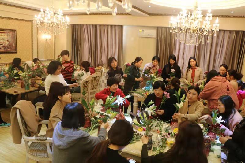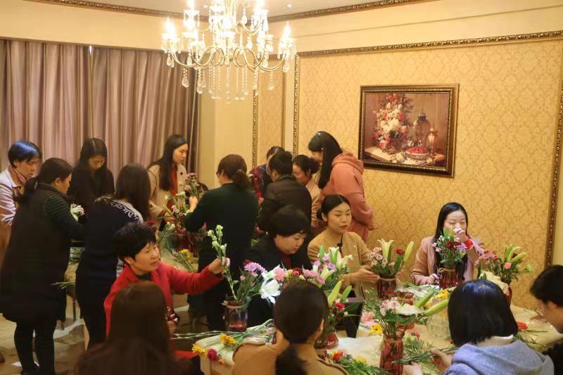 为庆祝第109个“三八”国际劳动妇女节,丰富女教工的精神文化生活,3月7日下午,食品学院在办公楼4楼举办"雅致女人 · 如花绽放"庆三八插花活动。